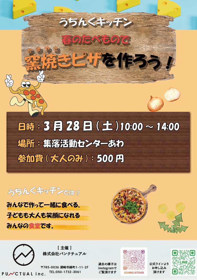 3月28日(土)に集落活動センターあわにて、パンクチュアルさんが主催する『子ども食堂』が開催されます👨🏻🍳🍕